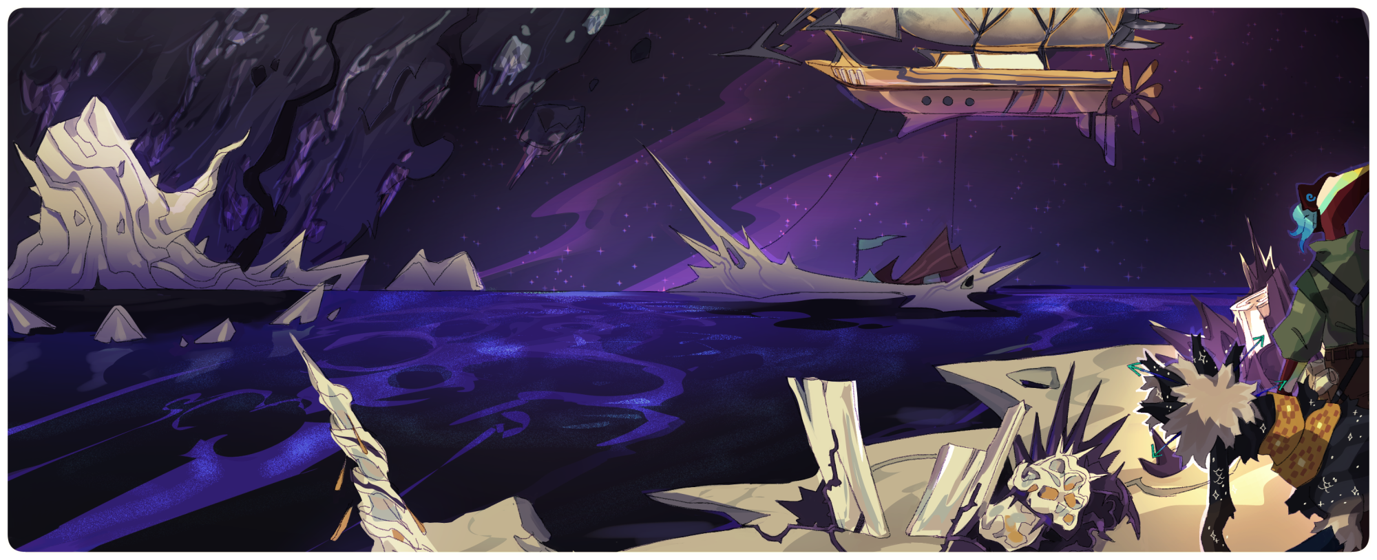 The Core planet below looms, coated in its glistening oceans of ichor and bleached bone-like metal lands. The sudden knowledge of its existence generates a large sum of curiosity and worry for those floating above, unsure how close the threat of ichor truly is as it lingers.Â